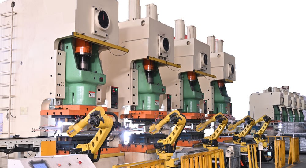 2010年12月合肥高科鈑金事業部成立,占地面積達16320平方米,目前擁有45-1000T大小沖床設備68臺,其中初期投入連續模自動生產線12條,后期投入機型手式全自動生產線3條,