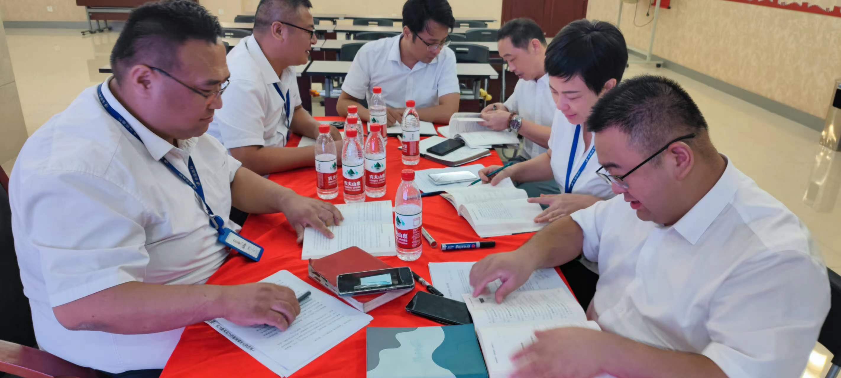 在交流環節,每個小組組長分別上臺發表感言,所思、所想、所悟,并聯系實際工作中的不足與欠缺之處,以及有待解決或尚未發現的問題,大家暢所欲言,無不盡抒。每個小組根據收獲點、反省點、改進策略、責任人、時間、機制相關內容完成了本次學習的《讀書改進計劃表》,并上臺宣讀、講解、公示。
